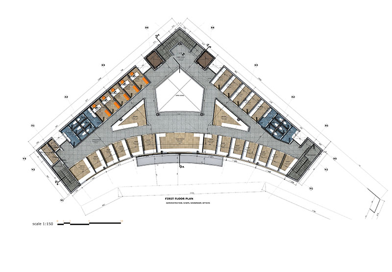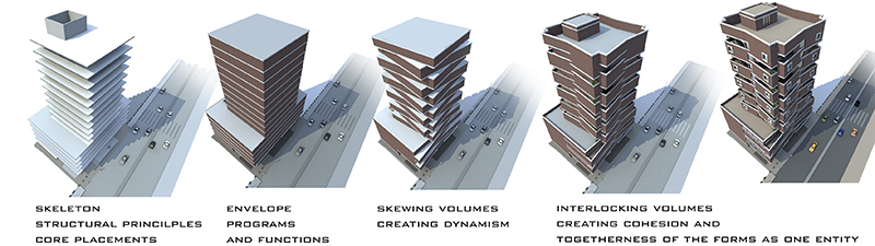 “Interwoven and Seamless transitions from the building skin to the interior spaces creating music of its own kind.”