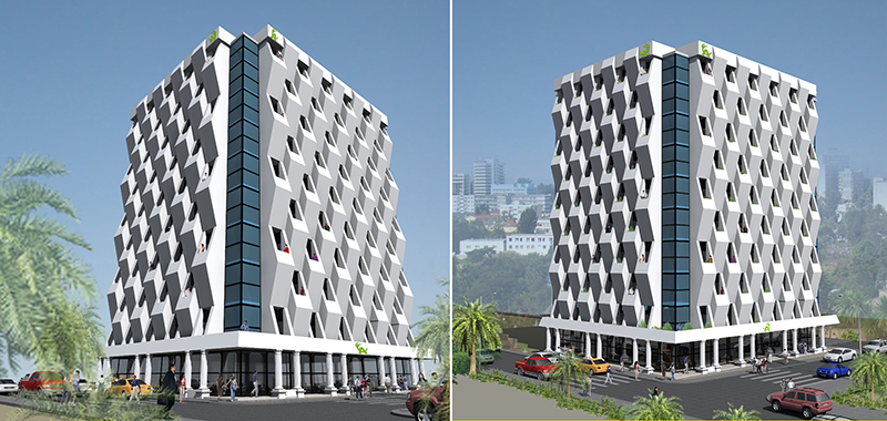 Client: Ato Abdullahi Tawfiq Project: B+G+8 Apartment BuildingDescription: “Born out of a challenging site, the design adapts to create comfortable interiors with a symmetrical exterior bringing order, beauty and harmony.”